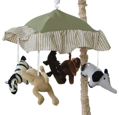Get wild with Zanzibar Zebras, monkeys, and more make this jungle-themed nursery a delight for boys and girls alike. This beautifully designed musical mobile will lull your little one fast asleep as they watch the dancing monkeys and zebras above their head. They will relax off to sleep with the soothing sounds of Brahms Lullaby and enjoy the merriment above their heads. The mobile will look great on any cot as a stand alone piece or as part of the Zanzibar room setting.