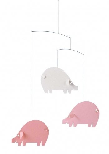 Pig’s are lovely and intelligent animals that are cheerful and good. This is a sweet mobile with two pink pigs and one white one, they all have little 3D ears and tails to add to the detail.