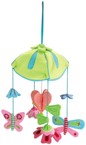 A colourful and intriguing mobile that will keep your little one interested and occupied for hours. This toy consists of flowers and cute butterflies to create a fine mobile for any new born, which has the added advantage of sounding when moved due to two bells!