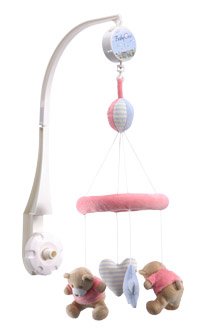 The background melody of this very cute cot toy creates a magical atmosphere. The cuddly, cute bears give your child comfort, and the melody induces relaxation and sleep. As well as being soothing it also develops the child's senses of sight and sound and teaches your baby to distinguish different sounds. Easily attaches to the cot.