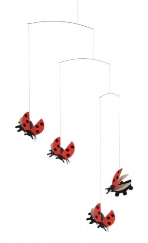 A beautifully designed mobile with flying Lady Birds.