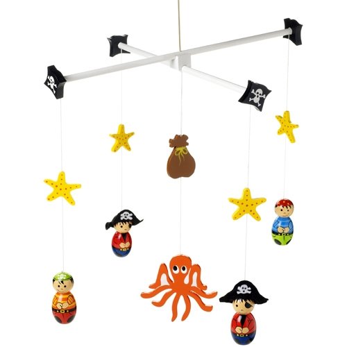 Orange Tree Toys Pirate Mobile is a lovely wooden mobile that will delight any baby! It is hand painted in bright colours featuring four, three dimensional fun pirate characters, an octopus and a bag of treasure. There are also Jolly Roger flags and colourful starfish to catch your baby's eye!