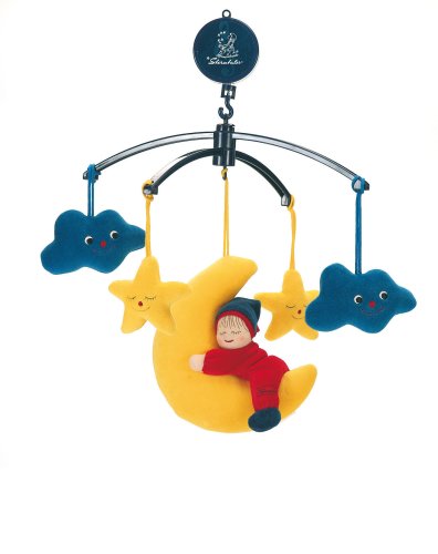 The moment the musical box is winded up, the mobile goes round arousing the baby's interest.