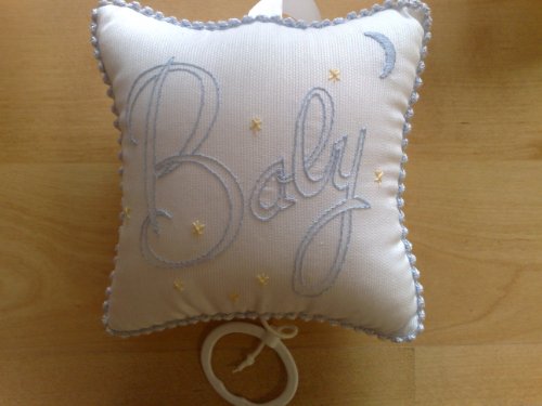 Musical padded pillow which plays a lullaby to help baby sleep.