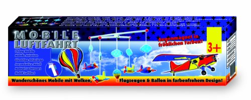Sourced from a German supplier, this aeroplane and balloon mobile is a great decorative addition to any nursery. All hand-painted and hand made, and supplied in a display box. Size 35cm across.