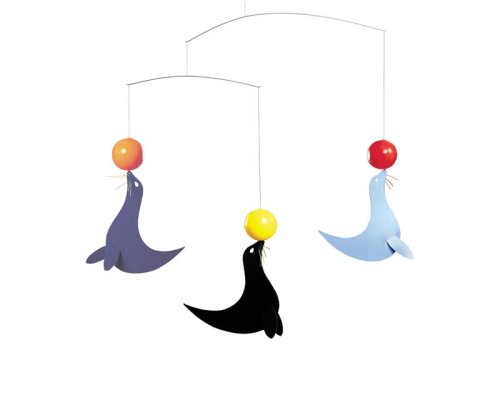 Colourful and fun. Three happy sealions each balancing a coloured ball on their nose. Made form durable plastic so suitable for the bathroom48cm x 35 cm