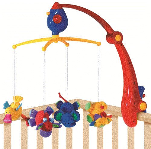 This Travel Mobile is musical with an easy-wind movement that plays a delightful melody. Soft, cute little animals dangle down, which all crinkle and rattle. The mobile folds down for easy storage and is easily attached to a surface. Two mirrored daisies. Visually stimulates and captivates your baby. Ideal for holidays and trips out.